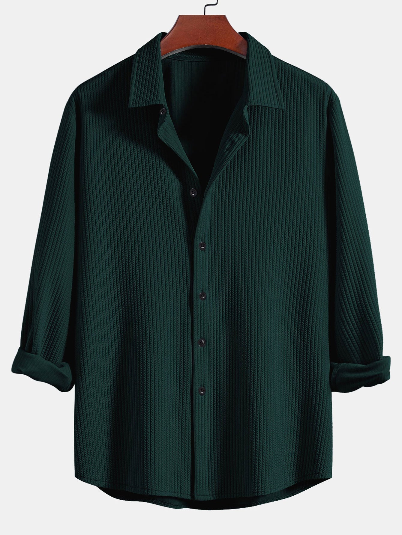 Ribbed Button-Up Shirt with Long Sleeves & Straight Leg Muscle Fit Pants